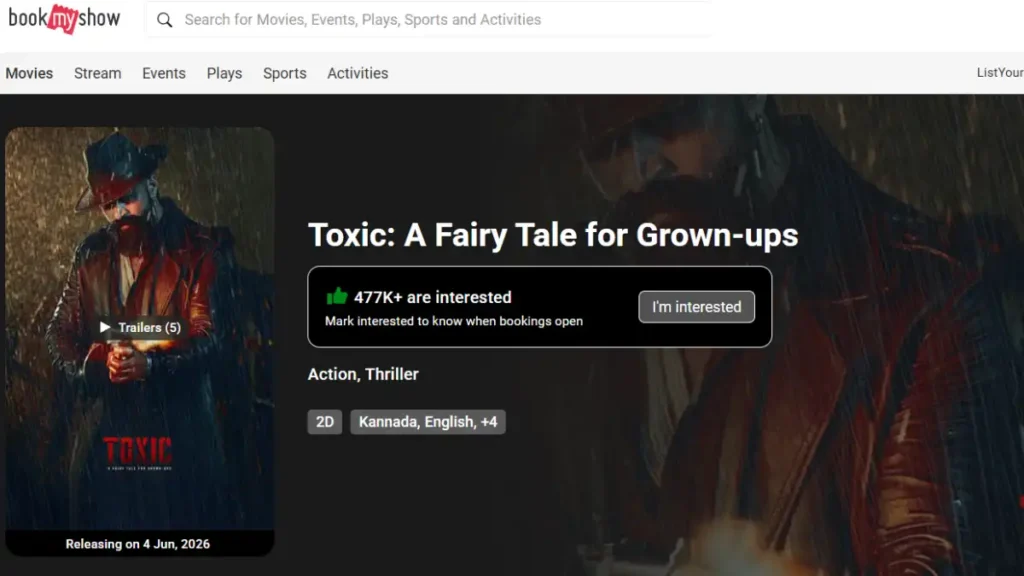 As of March 5, 2026, Dhurandhar 2 has recorded over 244K (2.45 lakh) user interest on BookMyShow, while Toxic shows an interest of 476K (4.76 lakh). On paper, it appears that Toxic is ahead, but this does not entirely reflect the films’ actual popularity.